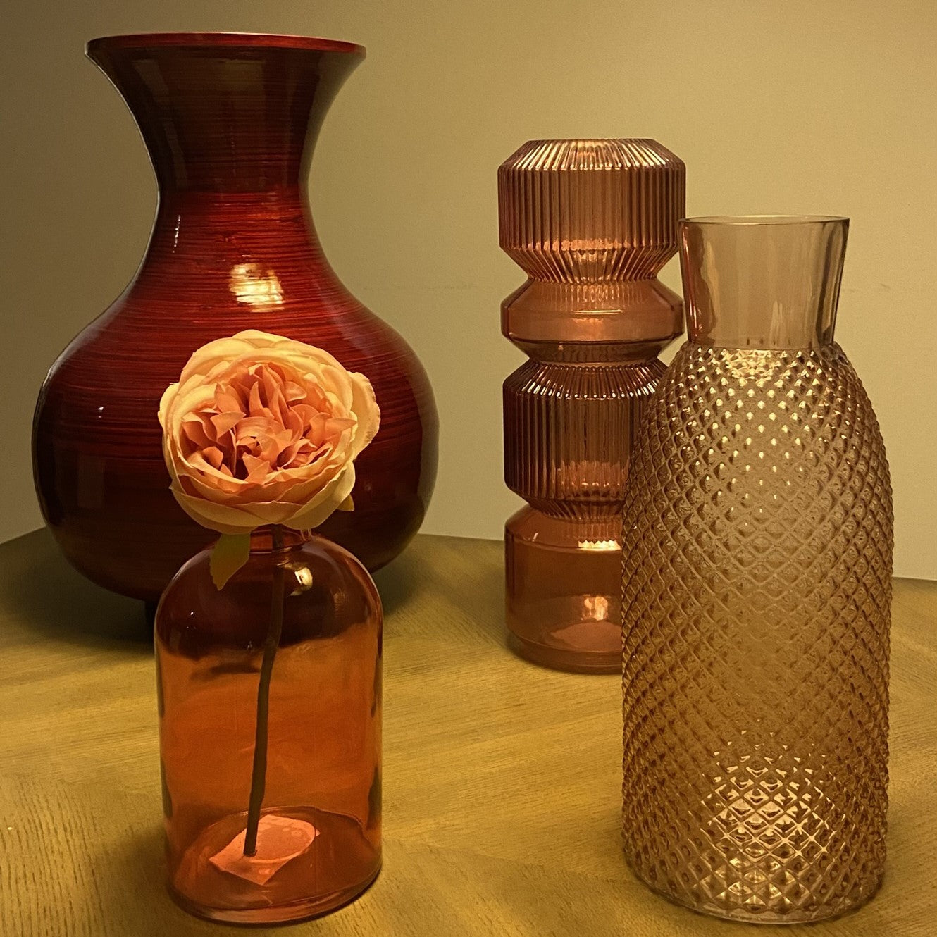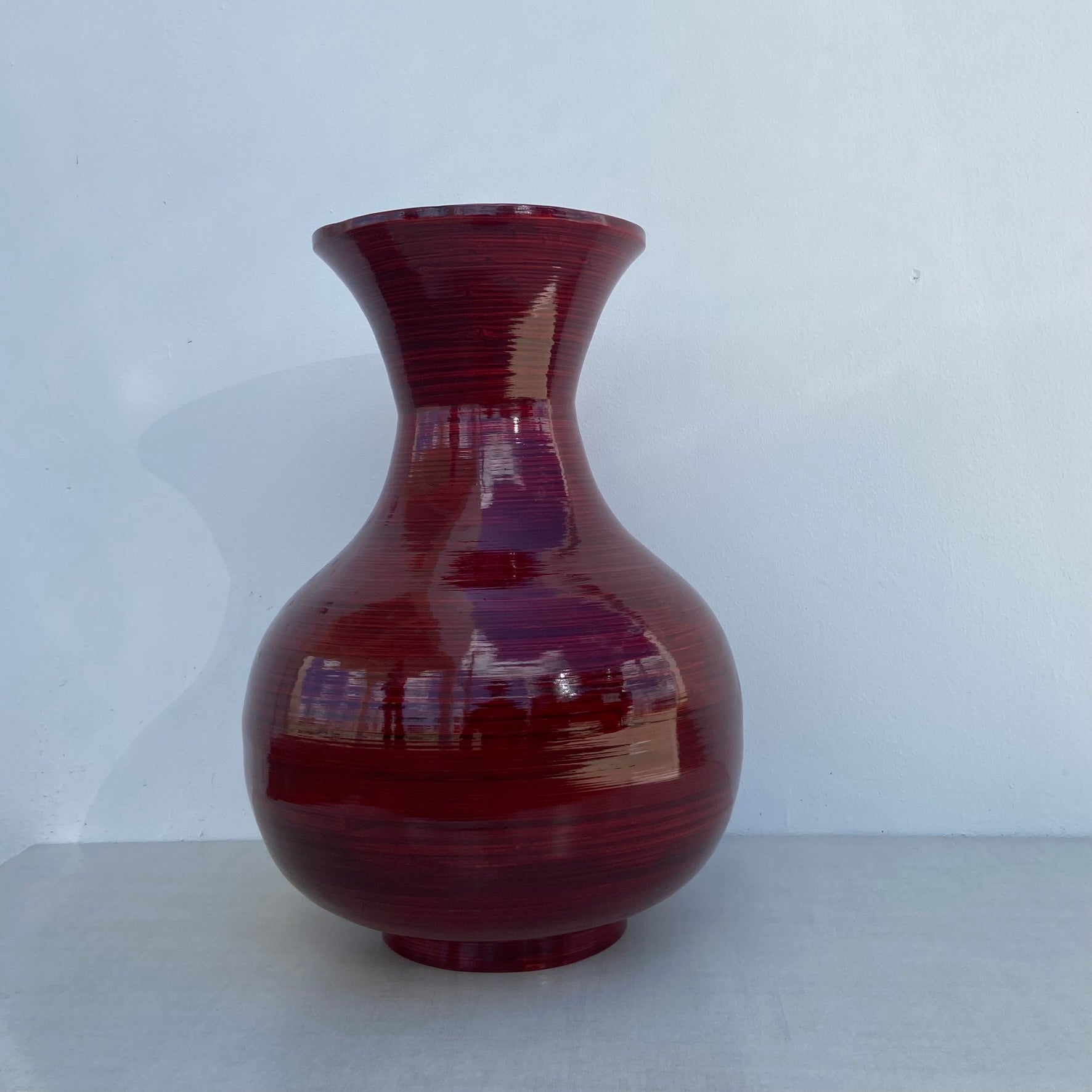 Florero decorativo 100% bambú, color rojo, 42cm de alto x 30cm de ancho